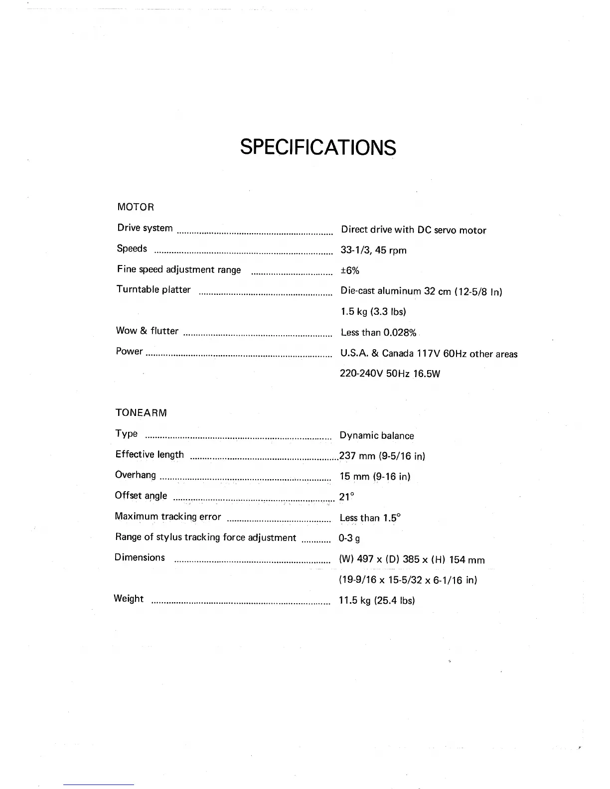 Micro Seiki DD-40 - Specifications