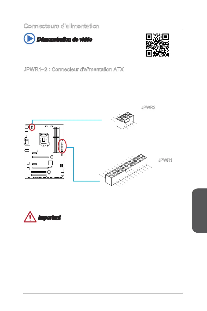 Voir le vidéo sur l’installation des connecteurs d’alimentation sur