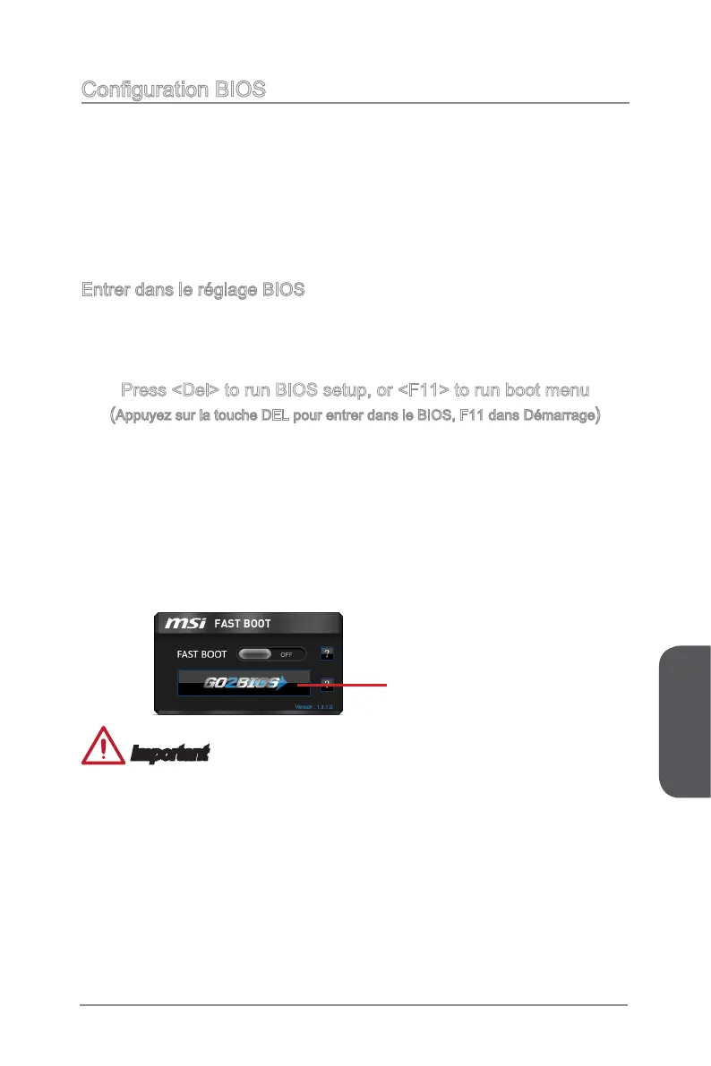 MSI fournit deux façons supplémentaires pour entrer dans la conguration BIOS.