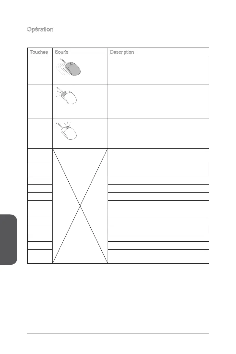 Vous pouvez contrôler le réglage BIOS avec la souris et le clavier. La liste ci-dessous