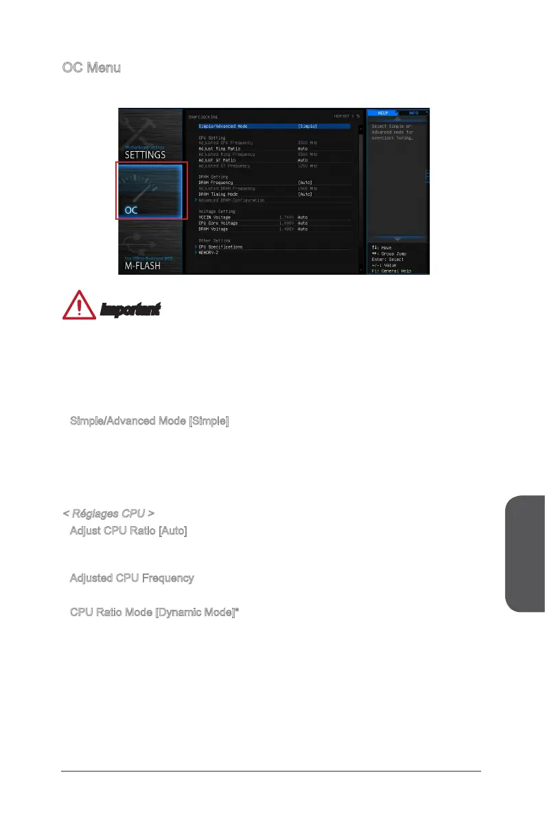 Nota : Le symbole * signie le mode avancé des réglages OC.