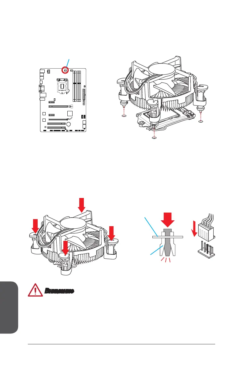 8. Установите кулер на материнскую плату, направив его кабель в сторону