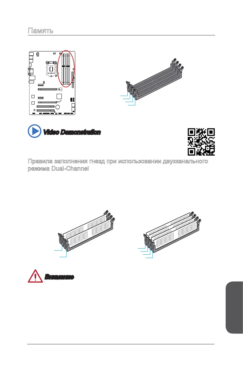показаны правила заполнения гнезд памяти при использовании двухканального