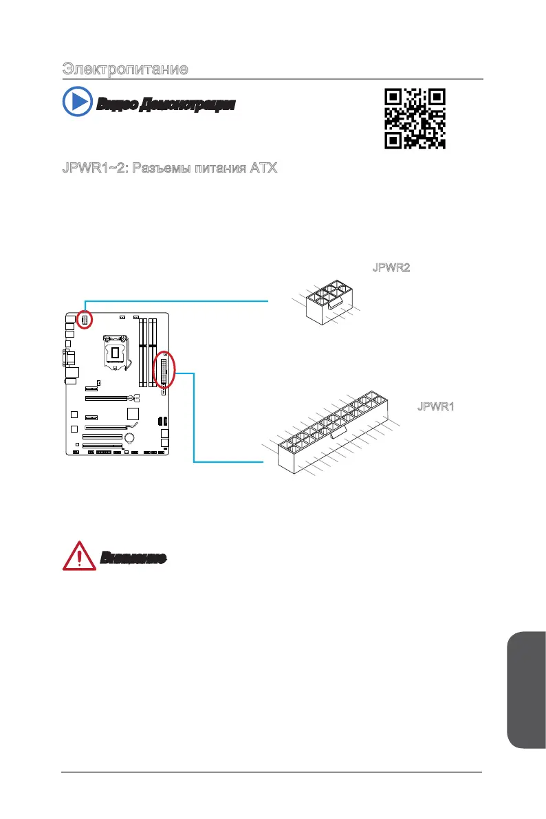 подключения ATX разъема питания совместите кабель питания с разъемом и