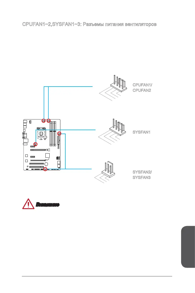CPUFAN1~2,SYSFAN1~3: Разъемы питания вентиляторов