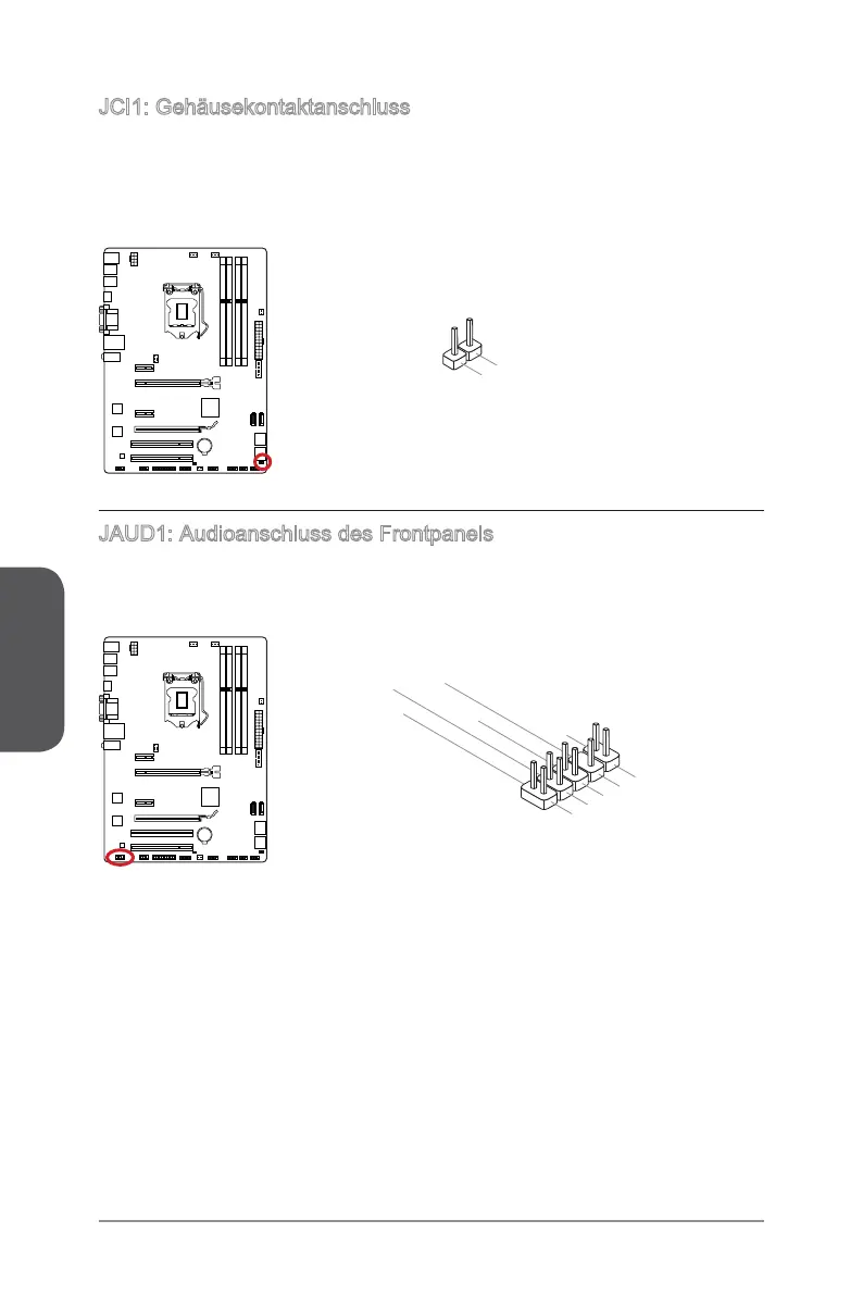 Dieser Anschluss wird mit einem Kontaktschalter verbunden. Wenn das PC-Gehäuse