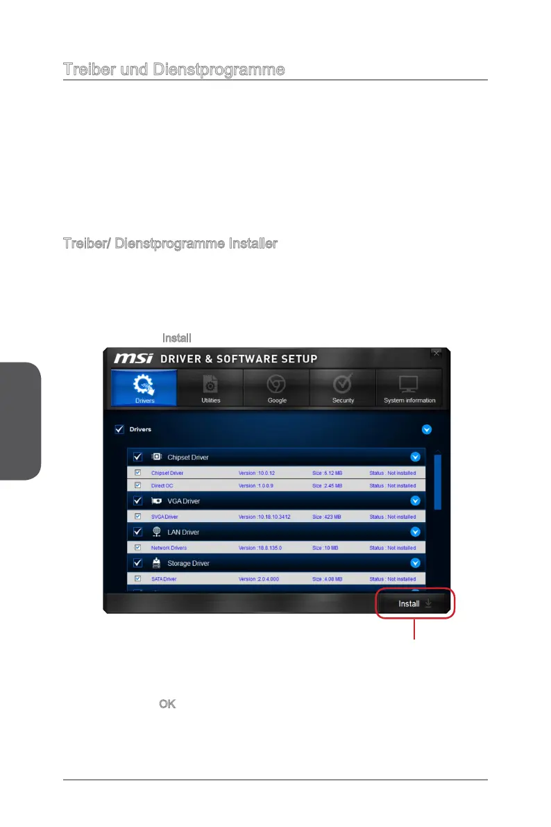 Lengen Sie die MSI-Treiber-Disk in das optische Laufwerk ein. Der Installierer