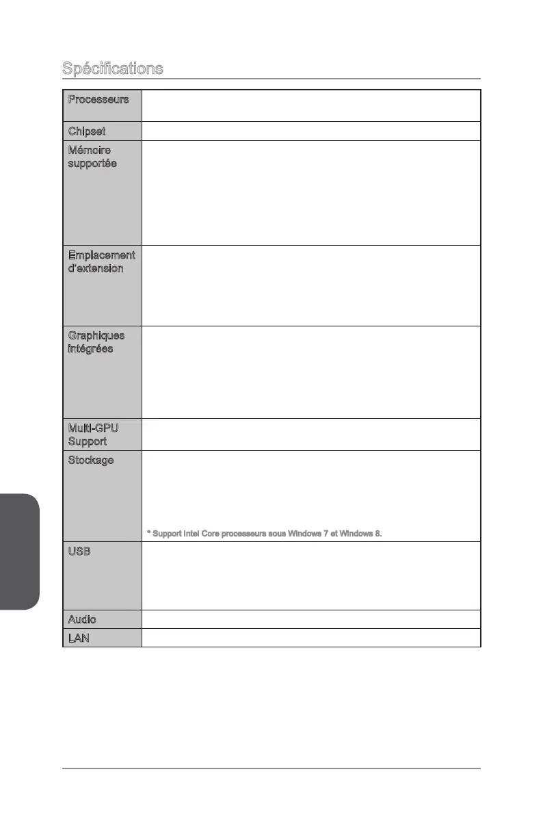 * Support Intel Core processeurs sous Windows 7 et Windows 8.