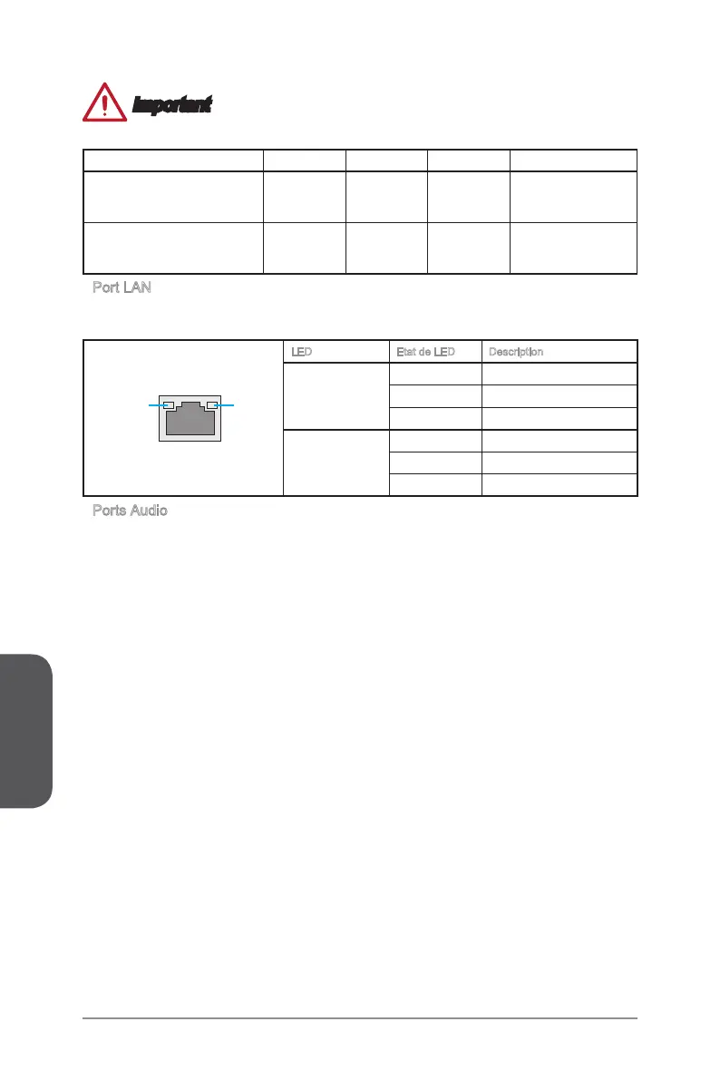 Ces connecteurs audio sont utilisés pour les périphériques audio. Vous pouvez