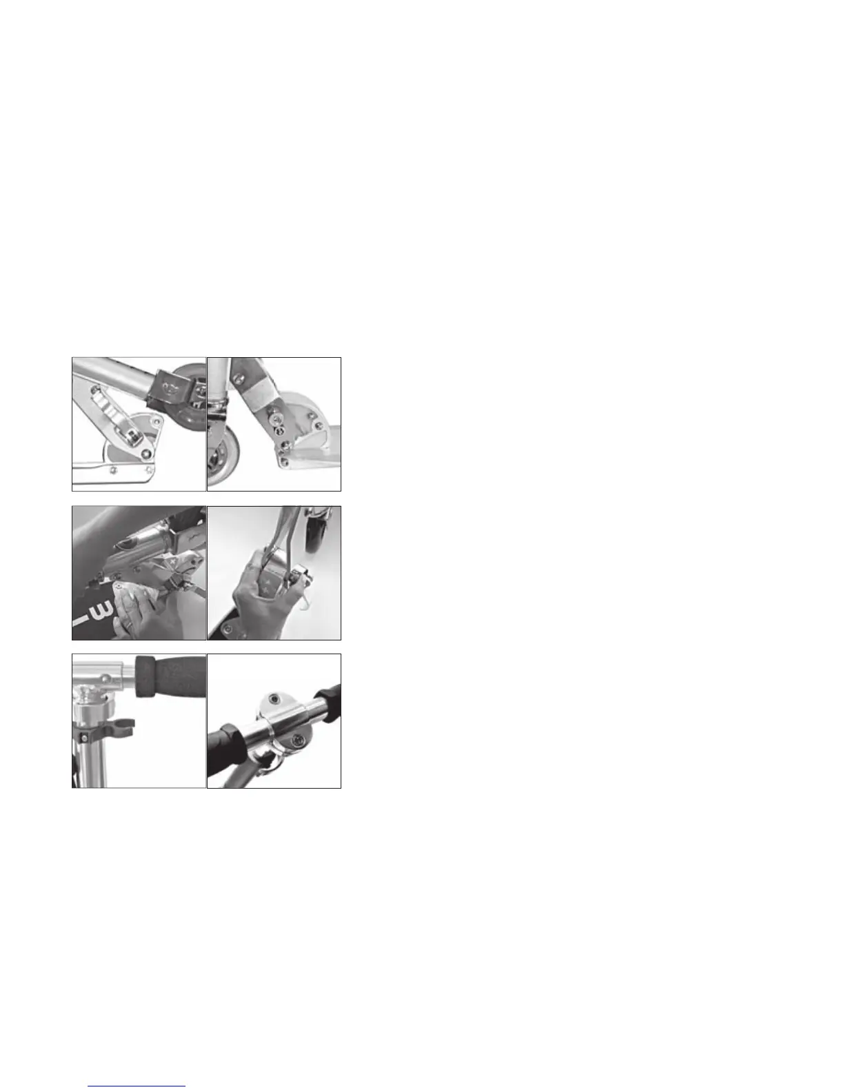 Open damp to release tension (A). Push down locking button (B), fold up steer-
