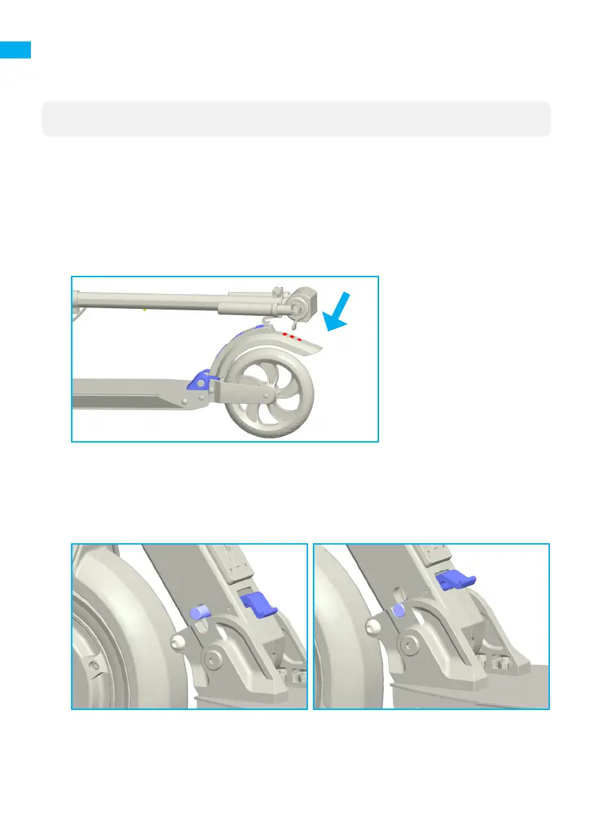 1. Druk de achterrempedaal in om de haak van de voorbuis los te maken.