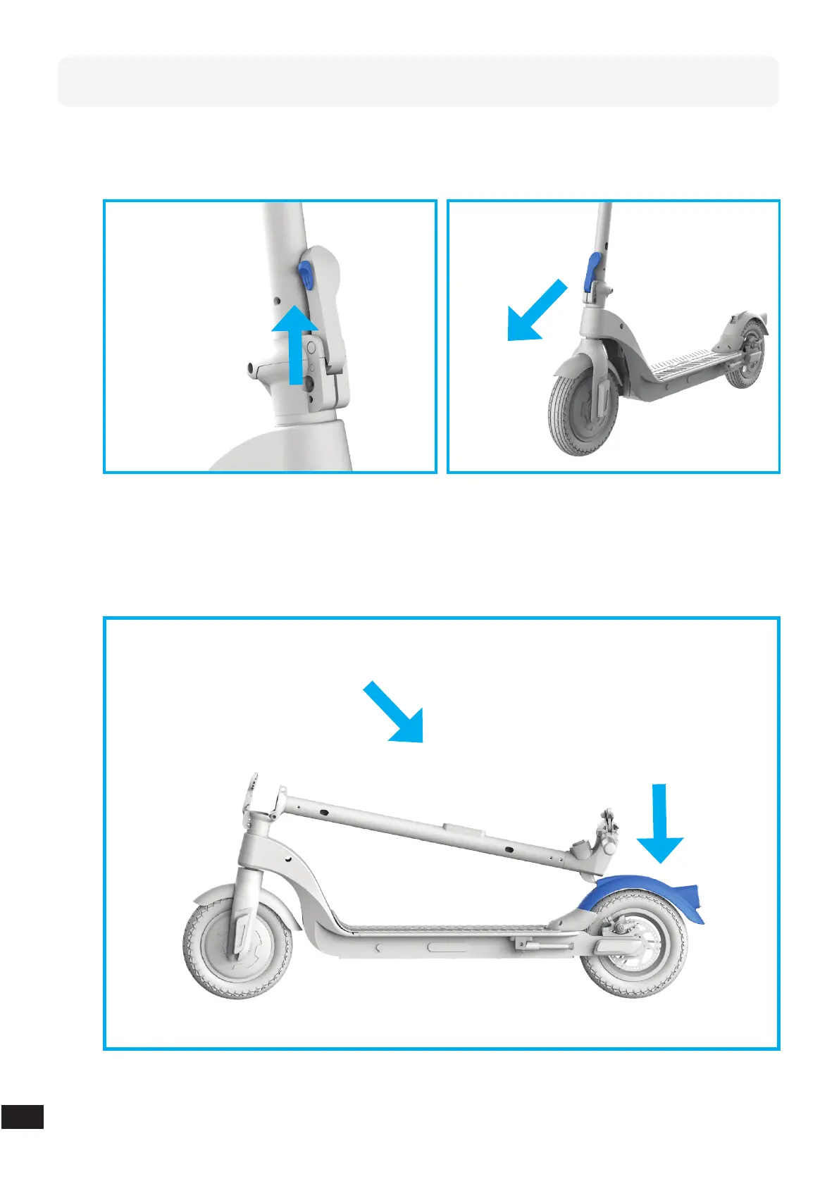 1. Pour replier votre trottinette, tirez sur la gâchette latérale avec le pouce et sur la