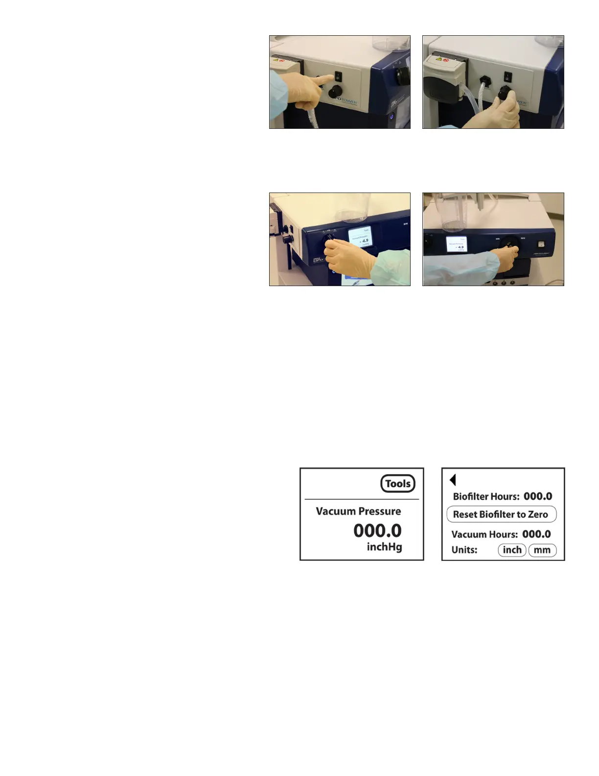 • Reset the biolter hour meter by selecting RESET BIOFILTER TO ZERO.