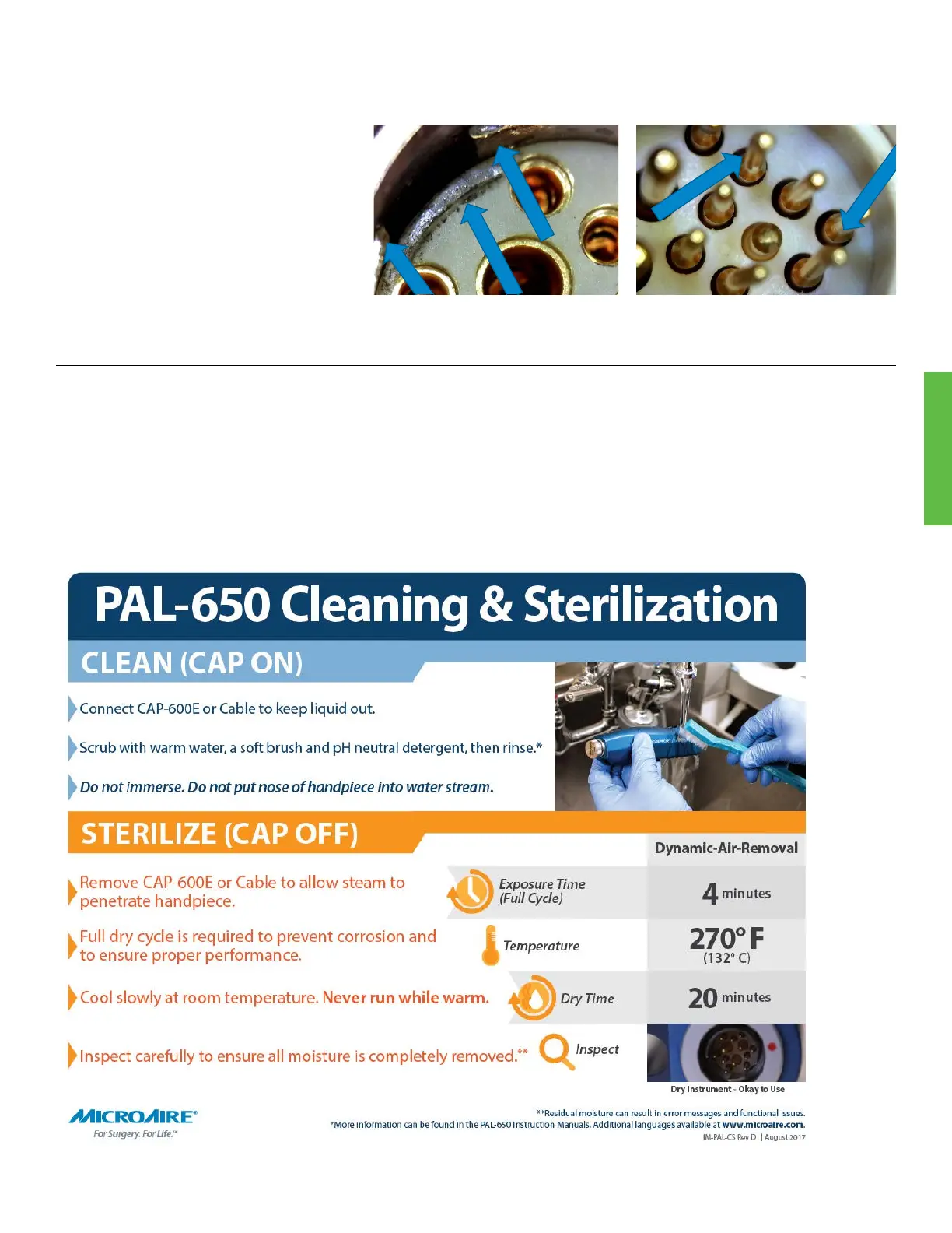 1. Each PAL Handpiece comes with a laminated cleaning & sterilization chart.