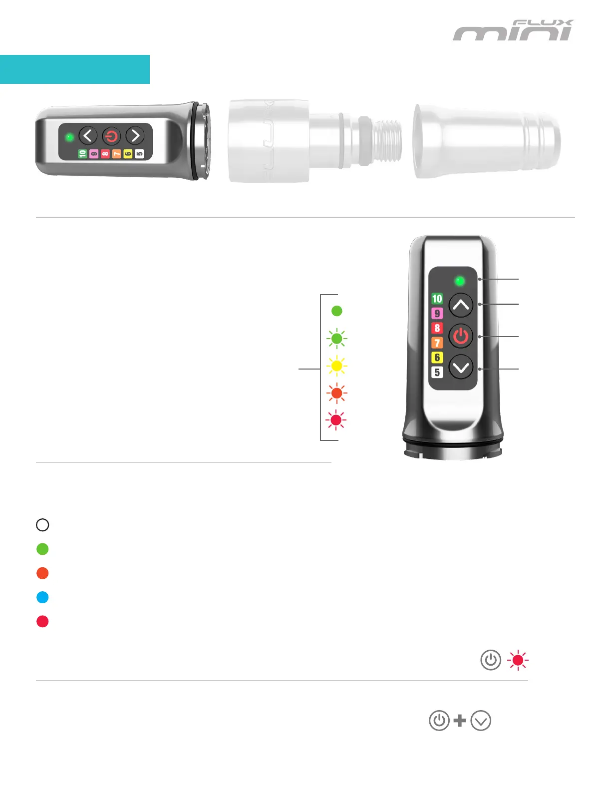 Activating Modes: Press and hold the power button to cycle through modes,