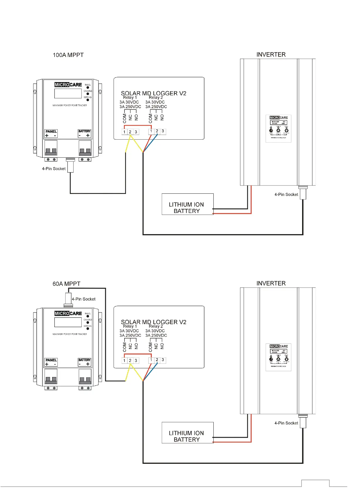 Microcare LCD MPPT 20 - V2 Lithium Ion Interface - Solar MD Logger Wiring Diagram; 100 A MPPT and Inverter; MPPT and Inverter