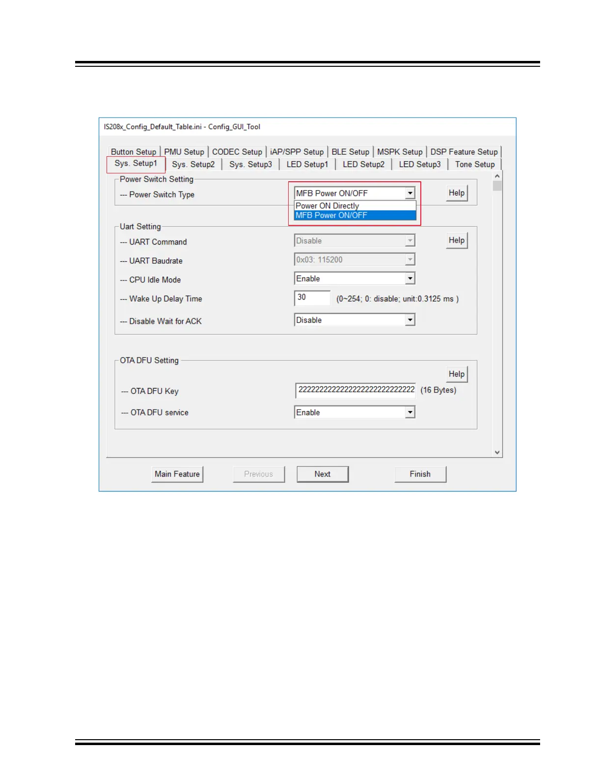 Select MFB Power ON/OFF in the “Power Switch Type” section.