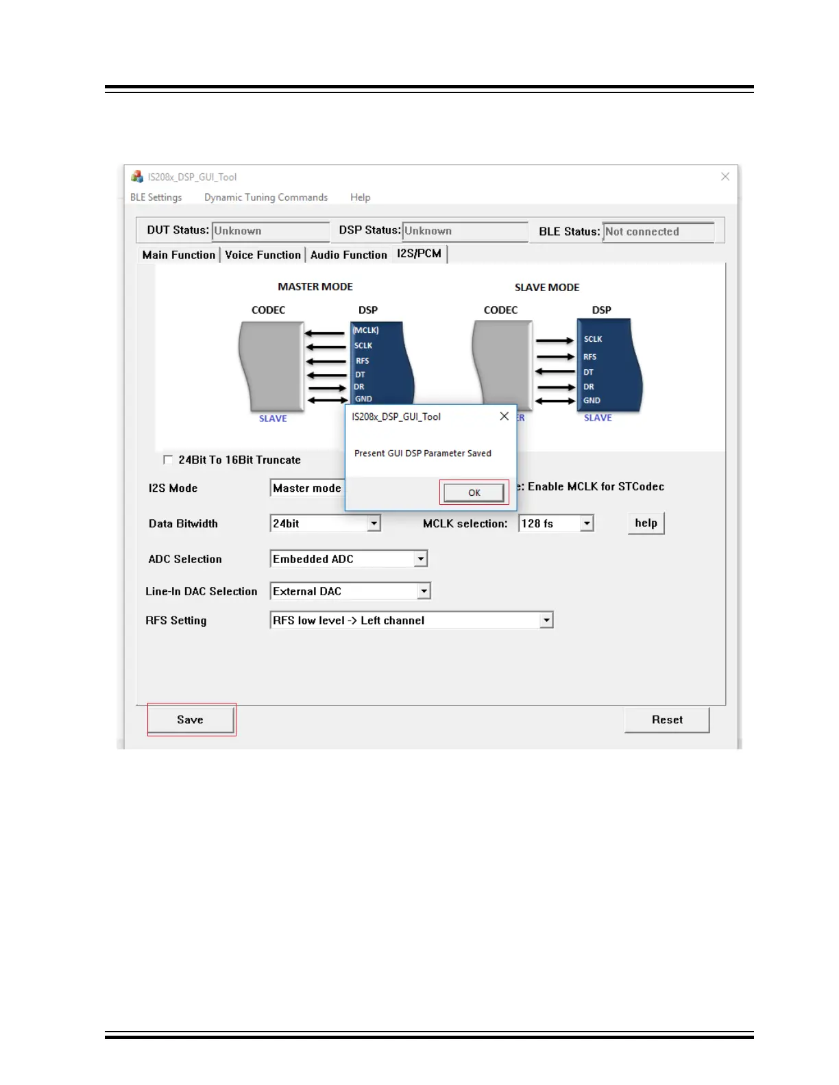 13. Click Save to save the changed parameters onto a file and click OK on the confirmation window (see the