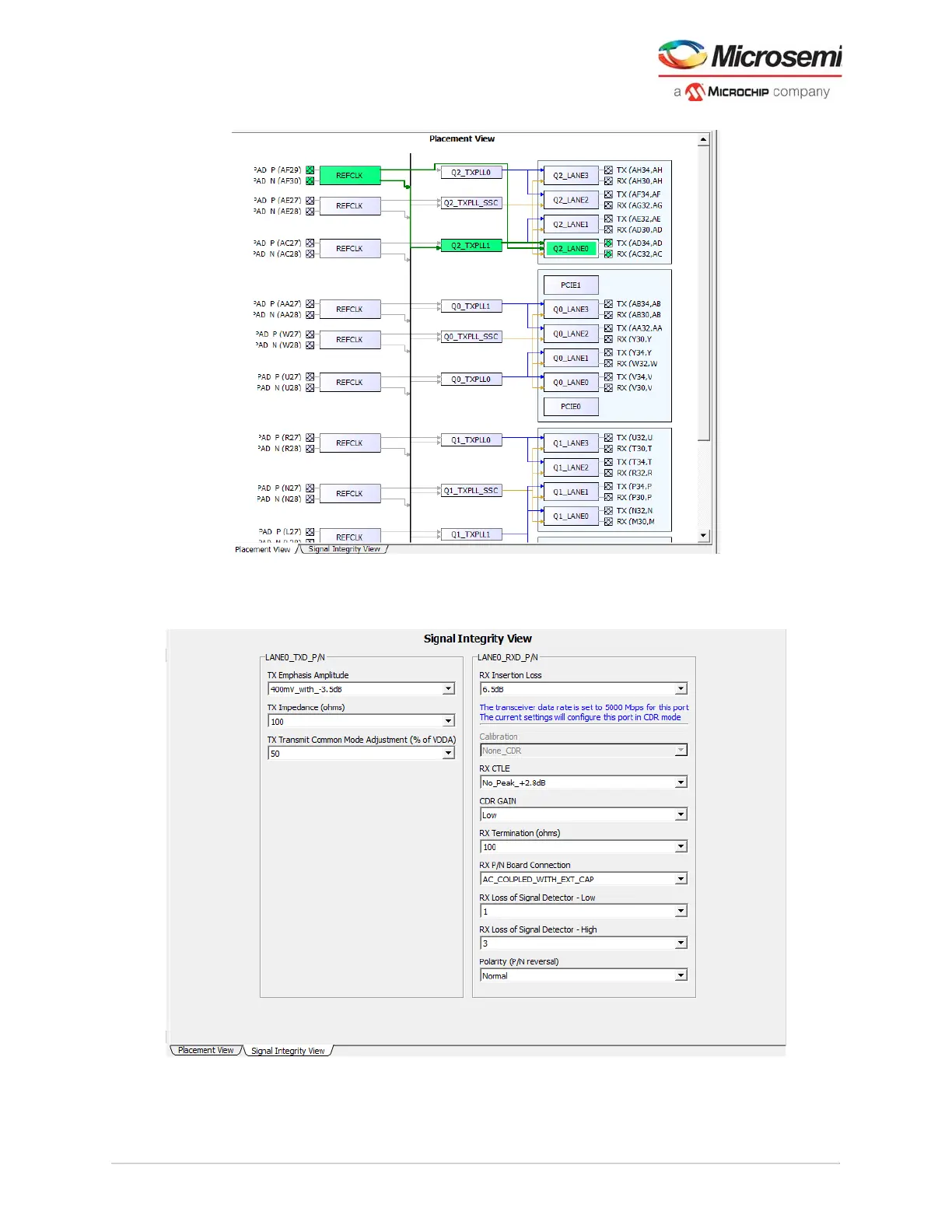 the user can view and change the signal integrity parameters for the Rx and Tx transceiver ports.