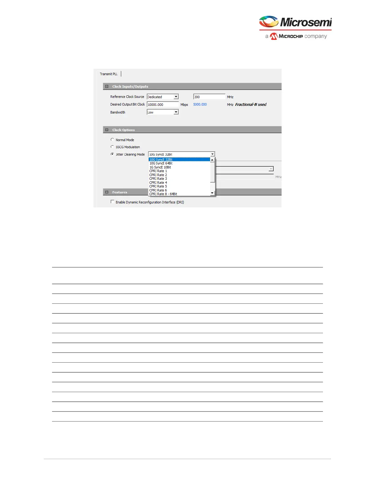 Jitter Cleaning Mode Selection Data Rate (Mbps)