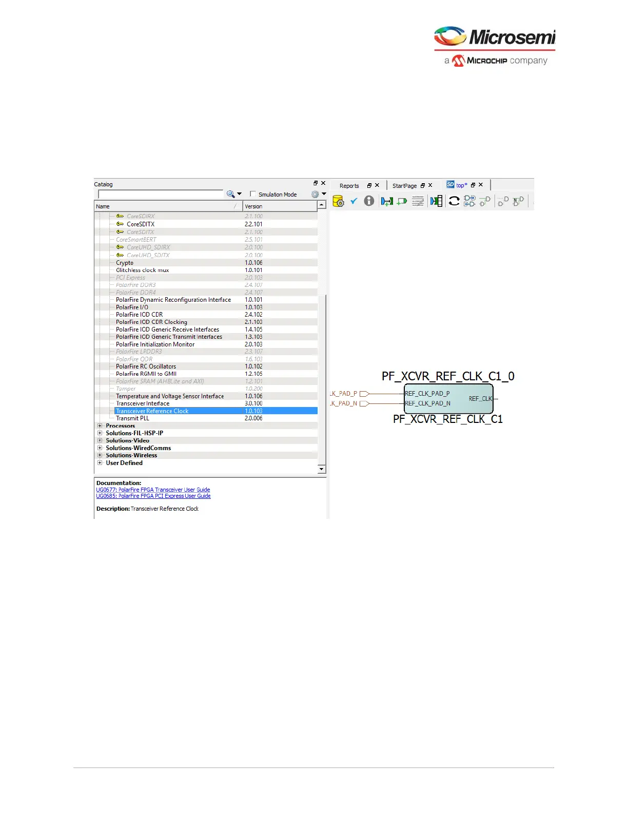 1. Access the Transceiver Reference Clock cores under PolarFire Features from the Catalog