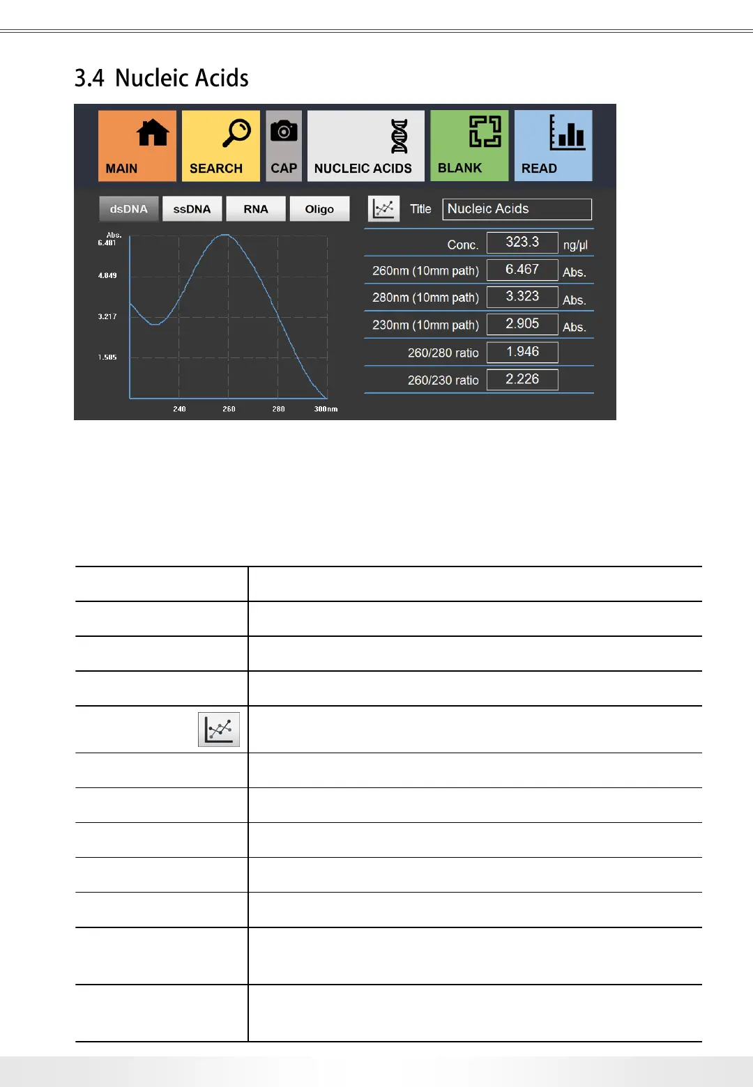 There are various options for Nucleic Acids measurement: