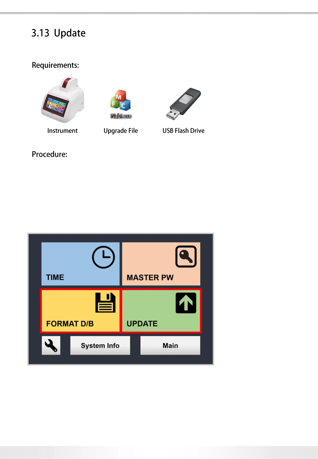 DO NOT Turn off the instrument or try other functions in the user interface during the update.