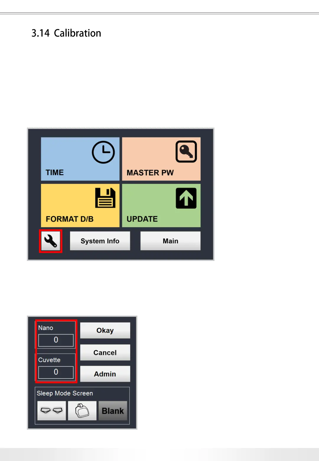 (Users must be logged in as Master in order to gain access to the Calibration Panel.)