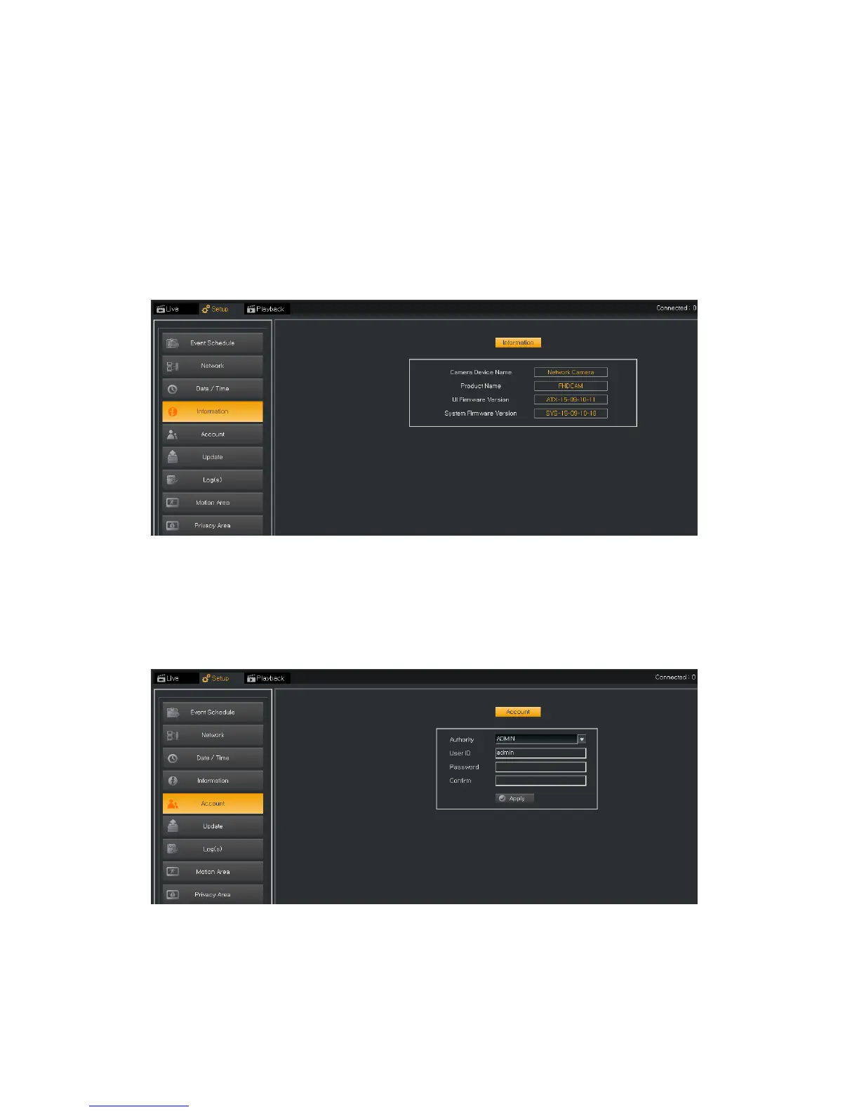 Users can verify the System Information such as Camera Device Name, Product Name, UI firmware Version, and System