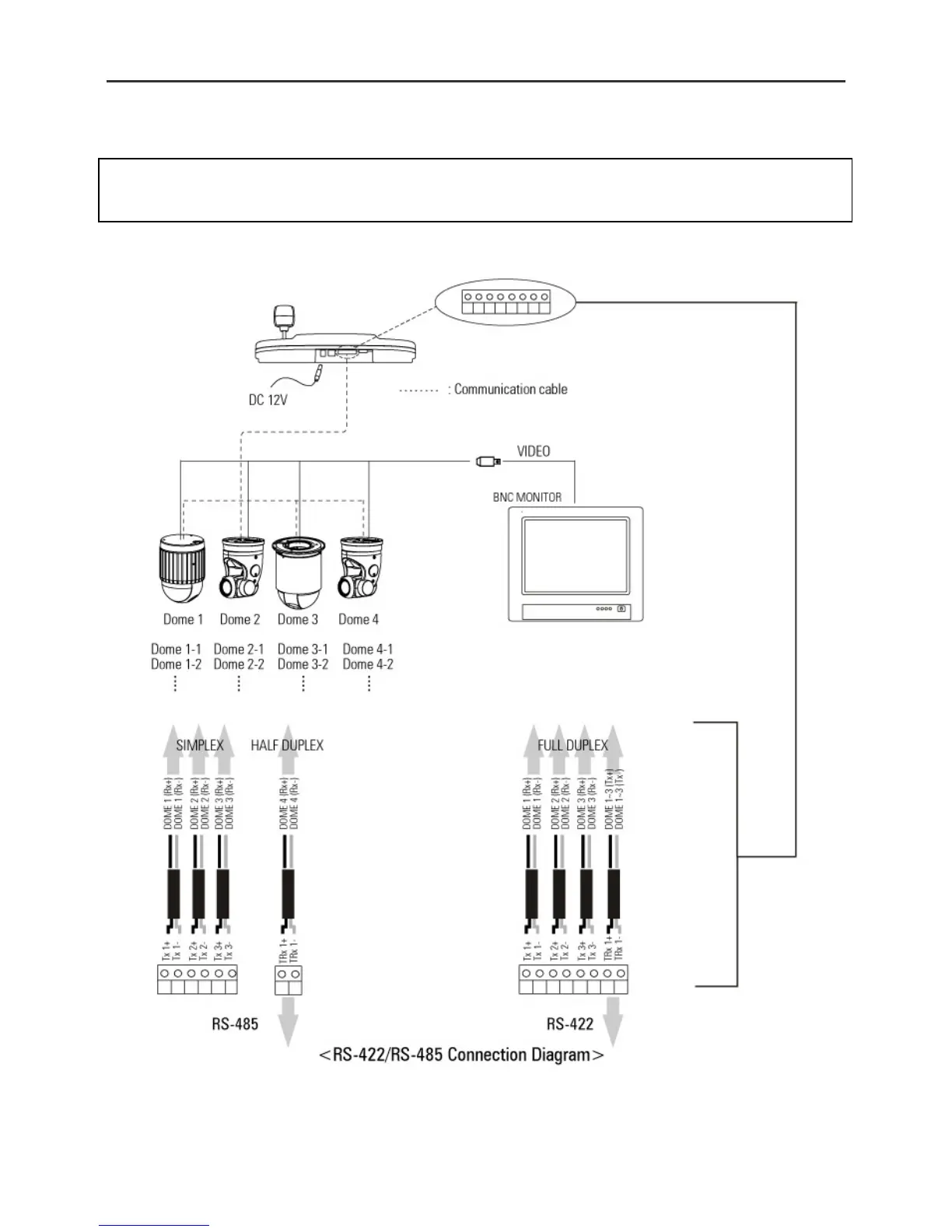 the controlled units. Connect the RS-485 output port of Remote keyboard to