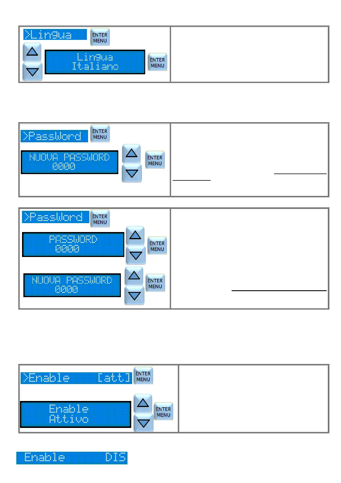 Dopo la definizione della 4° cifra, la pressione di ENTER salva