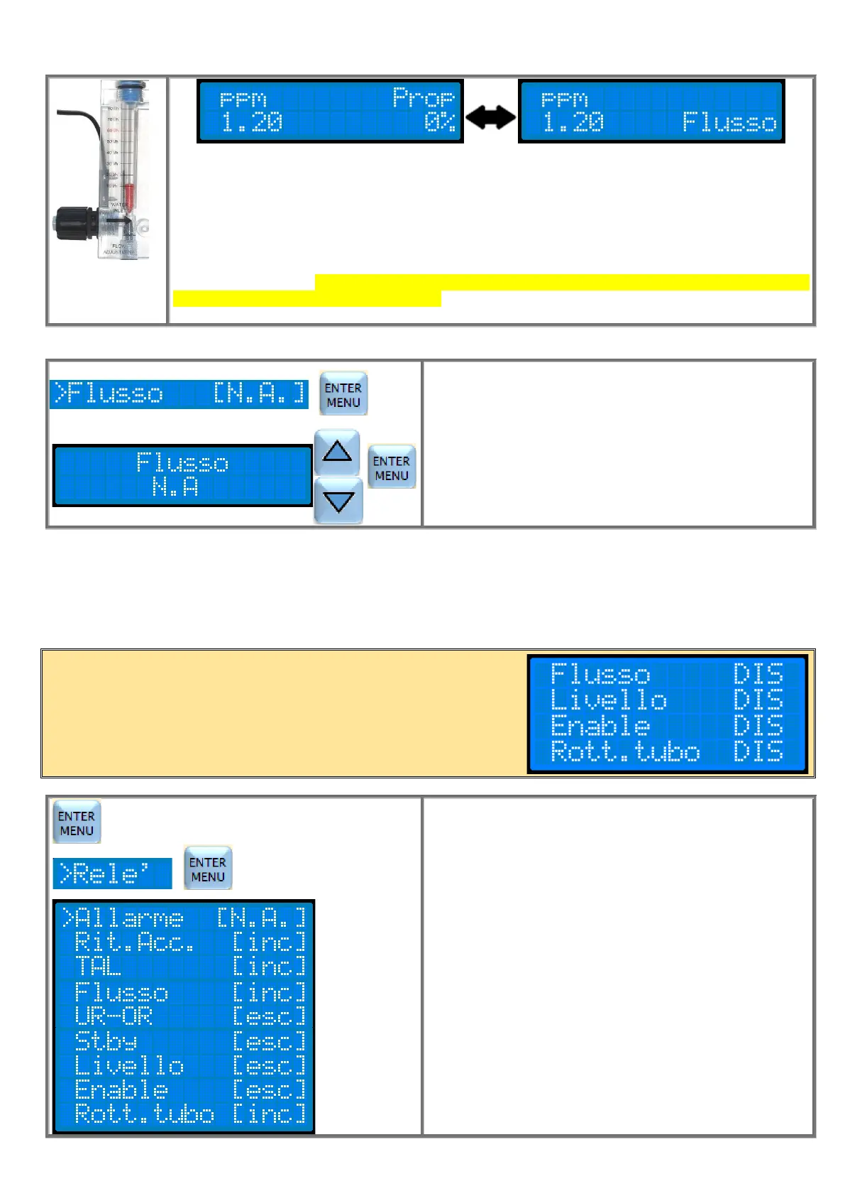 3) Il display visualizza alternativamente la scritta “Flusso” sulla seconda riga e il modo di