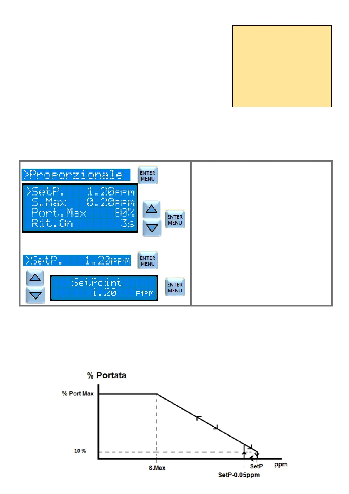 Con misura compresa tra 0.20ppm e 1.20ppm la pompa dosa proporzionalmente alla distanza della misura dal setpoint.