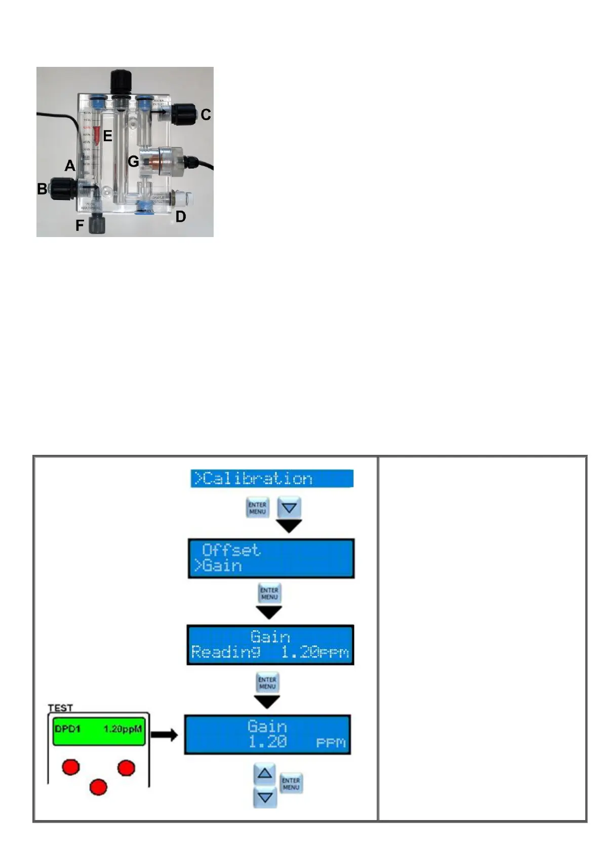 example if the chlorine concentration desired is 1.20ppM it is strictly recommended to do the gain calibration with water in