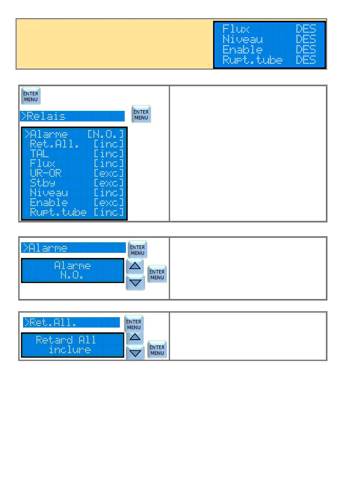 « Relais ». Appuyez sur ENTER pour entrer dans le sous-