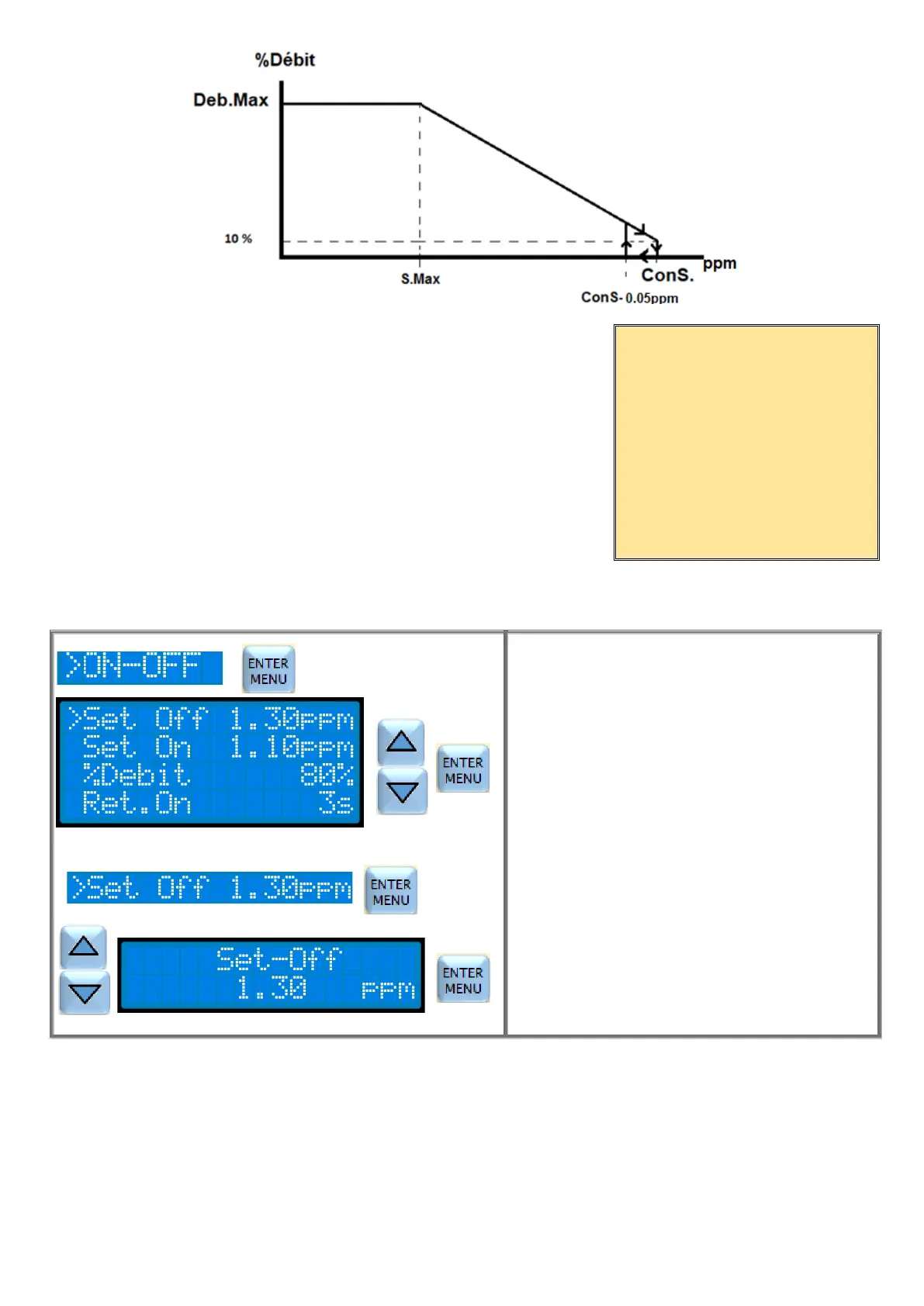 Avec une mesure de 1.10ppm ou moins, la pompe dose à 80% du débit maximal.