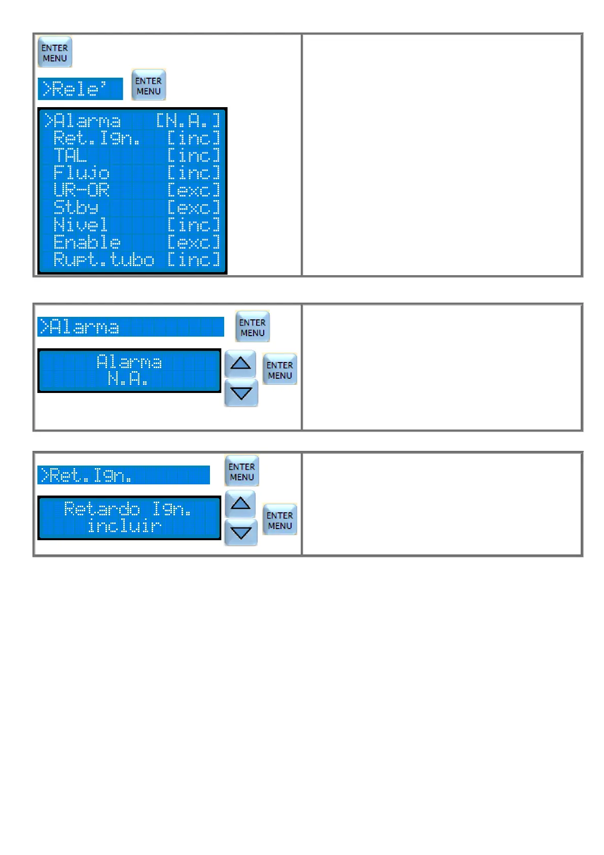 En el menú Relé, seleccione "Alarma" con el cursor y