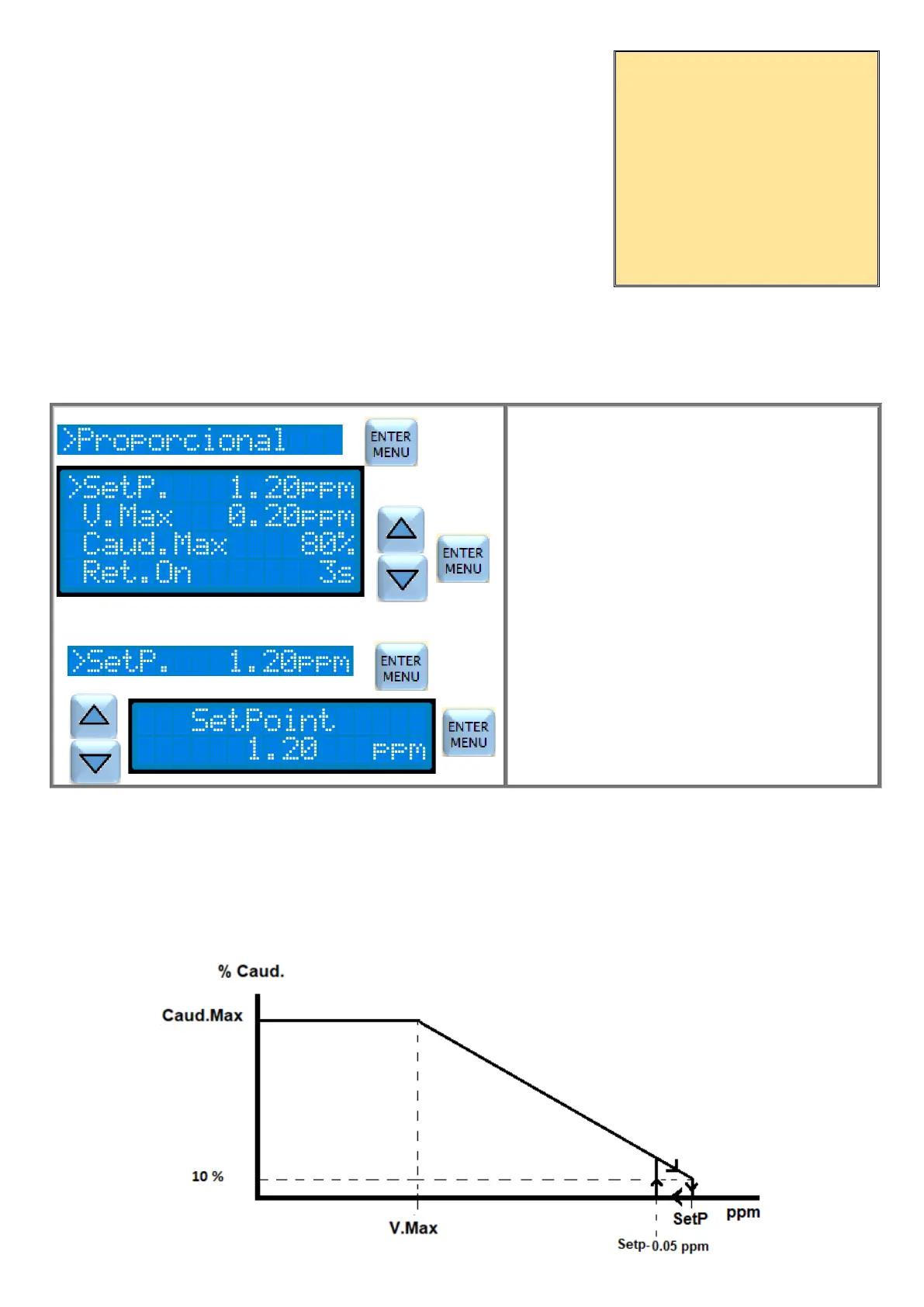 Con una medida igual o inferior a 0.20ppm, la bomba dosifica al 80% del caudal máximo.