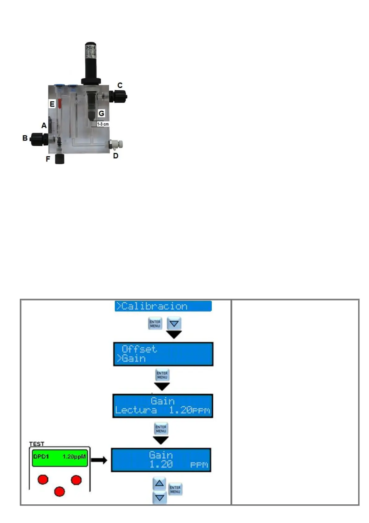 deseado. Por ejemplo, si se desea una concentración de cloro de 1.20ppM es recomendable calibrar el gain de agua en