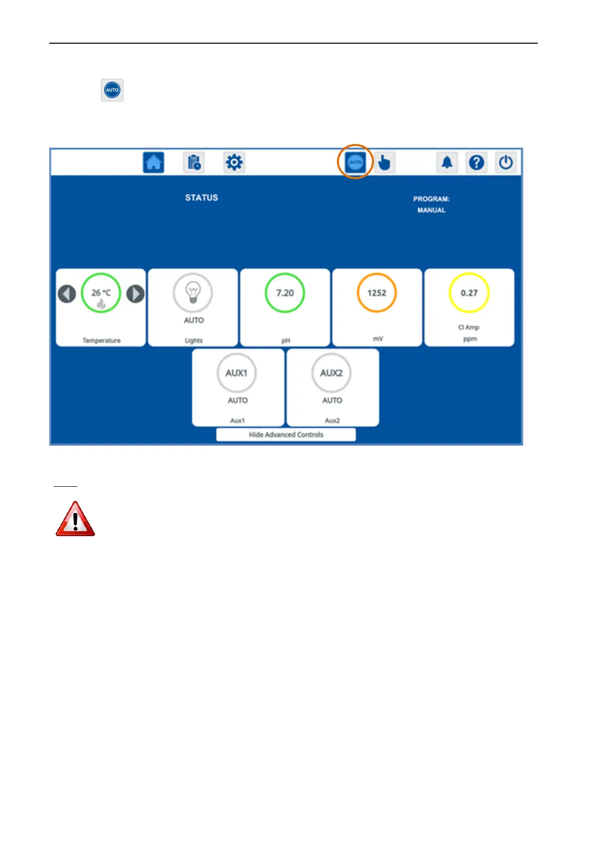 By using the button, the system will work automatically in accordance with the operating program, settings and set-points