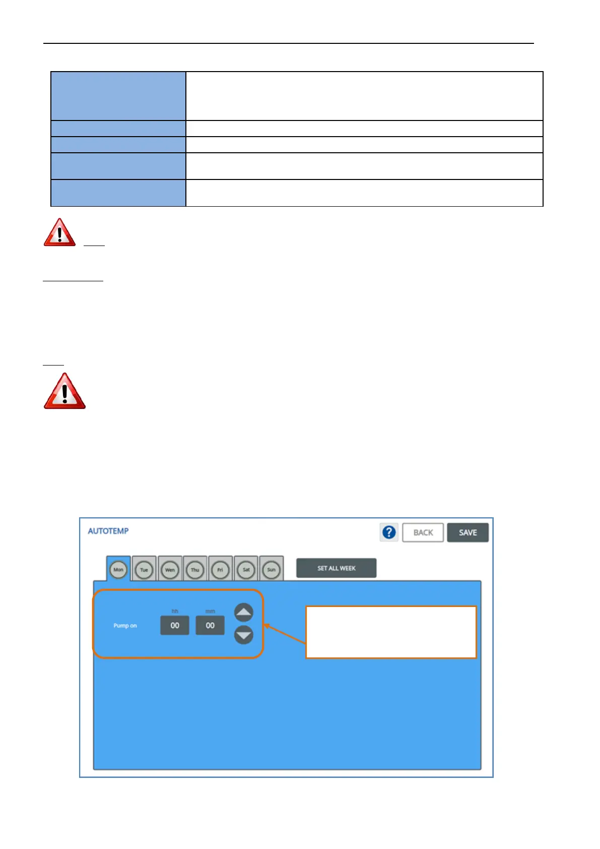 The user can program up to 3 daily timers for the activation of the recirculation pump.