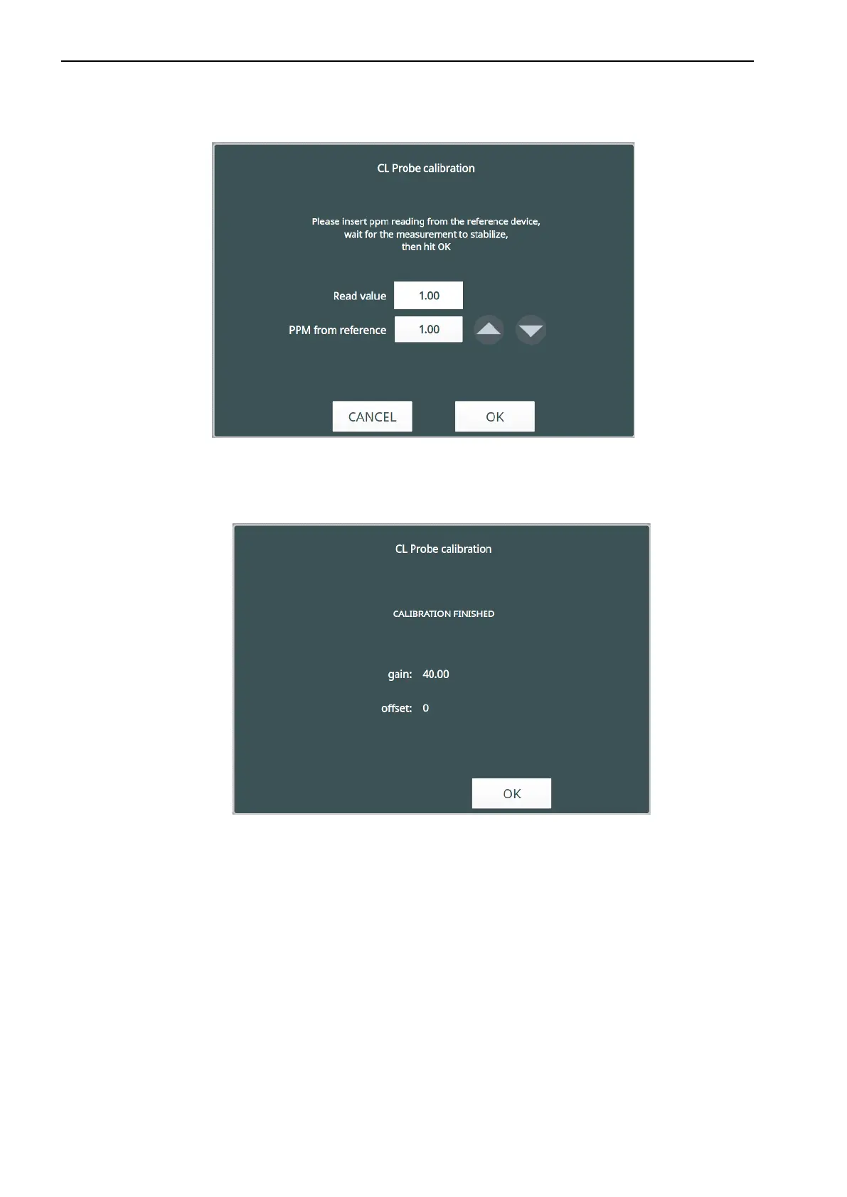 4. A window with the value of GAIN obtained from the calibration will appear.