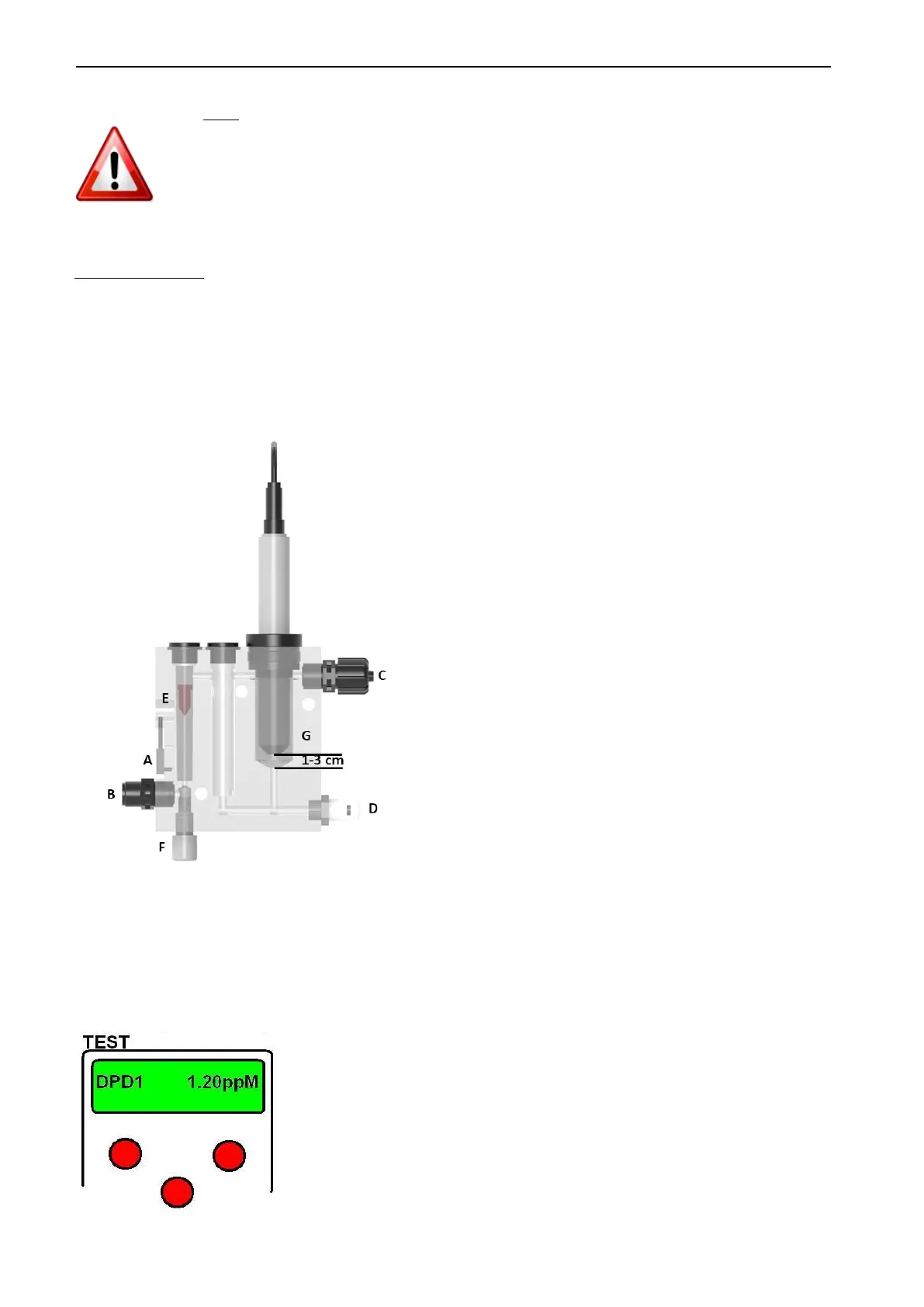 Do a DPD1 test on the water sample taken from the Tap of the probe holder (D).