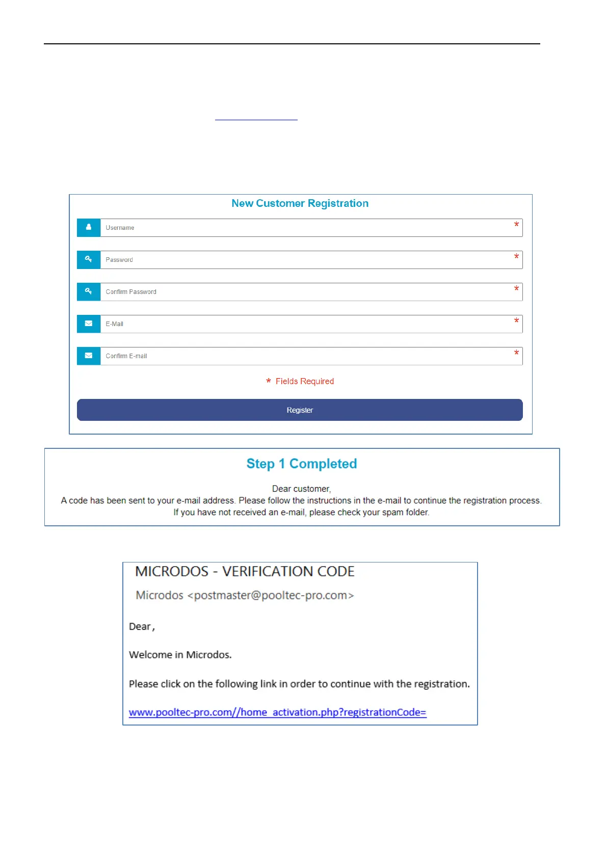 Wait for the confirmation email sent by postmaster@pooltec-pro.com (check the SPAM folder).