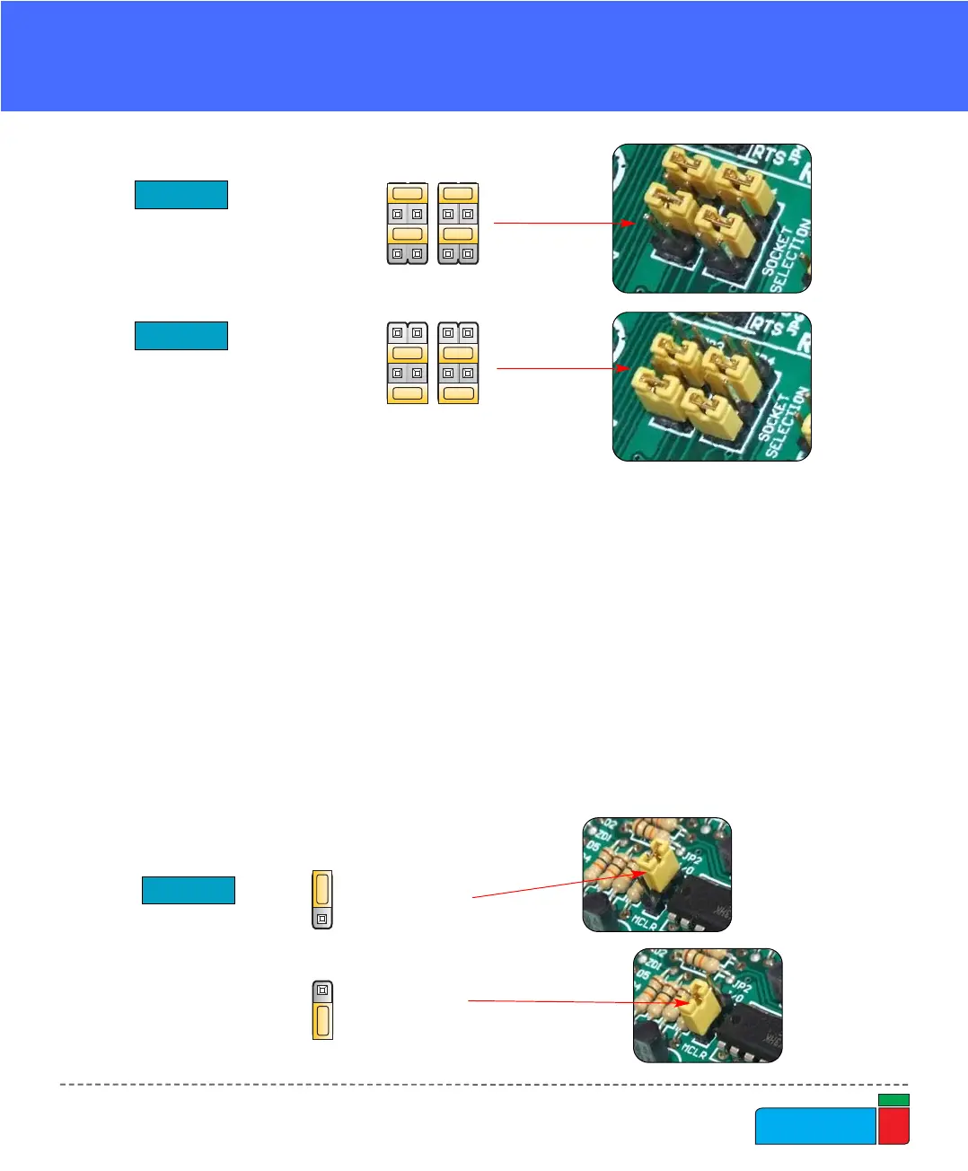 For DIP20, DIP14 and DIP8 sockets, these jumpers should be in the lower position