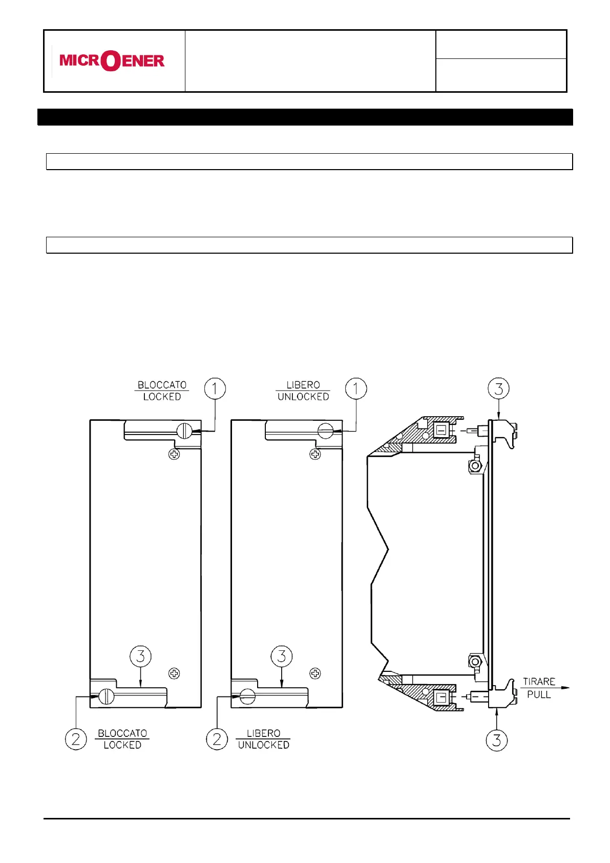 Rotate anticlockwise the screws and with the mark in the vertical position (locked).