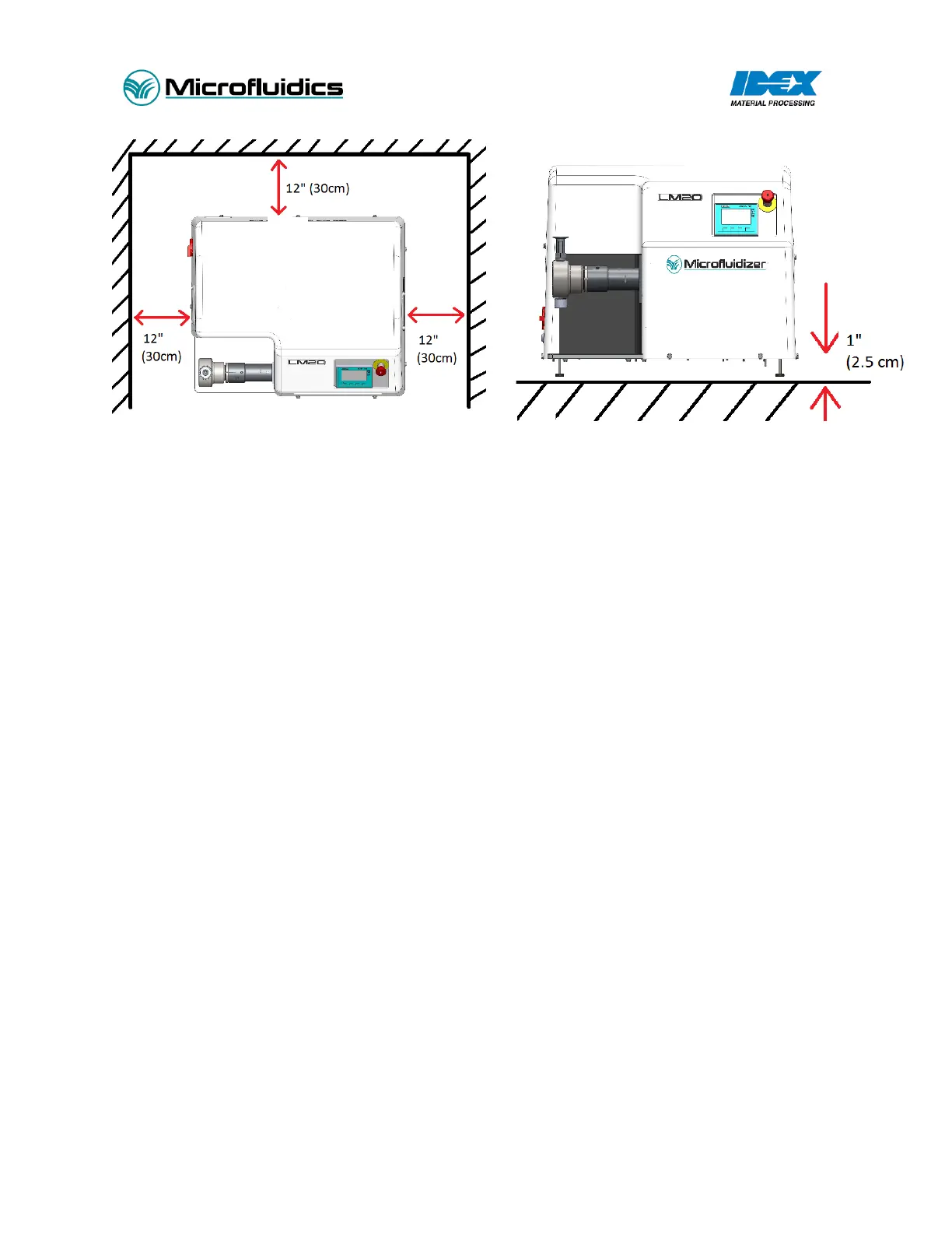 A minimum clearance of 12 inches (30 cm) around all sides of the Microfluidizer