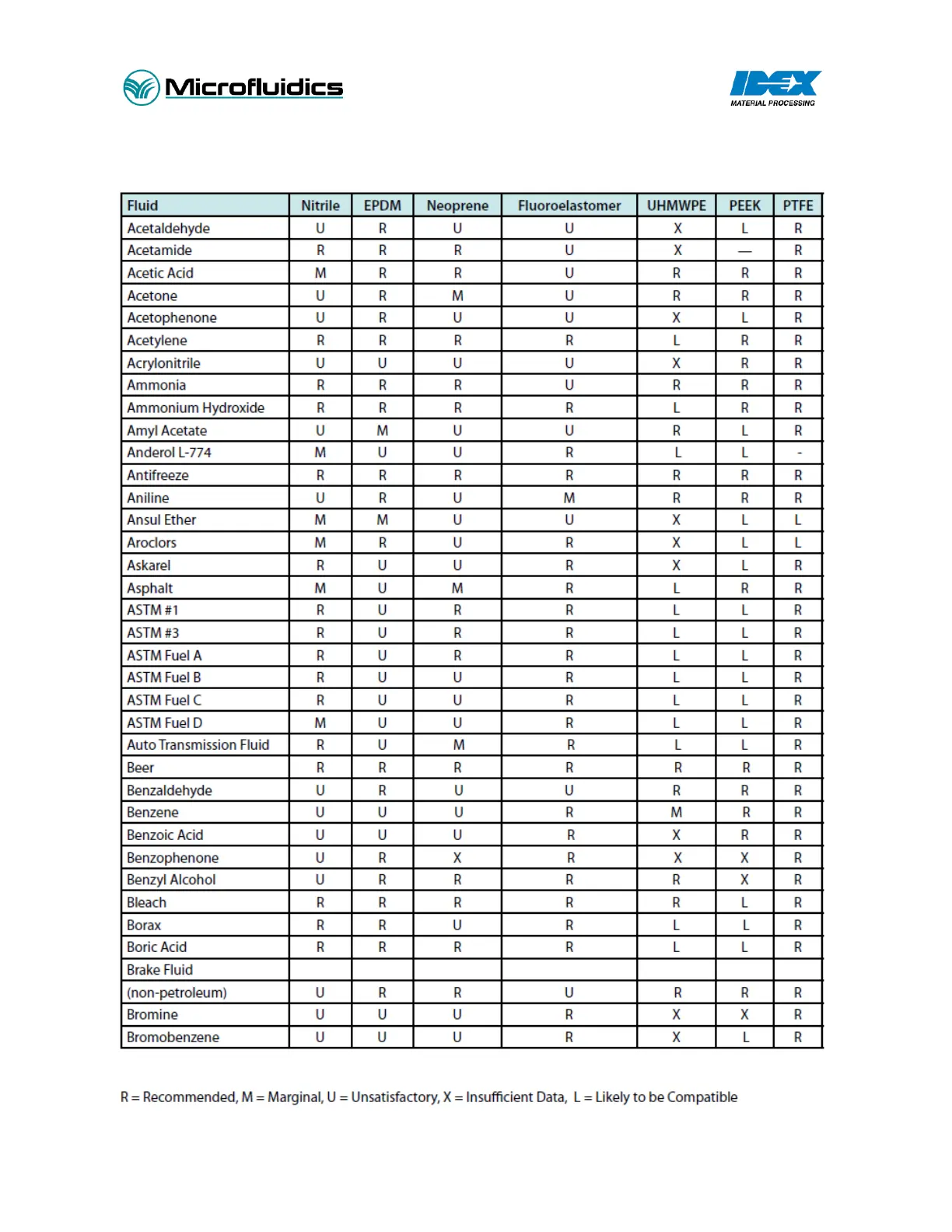 Microfluidics Microfluidizer LM20 - Detailed Fluid Compatibility Chart