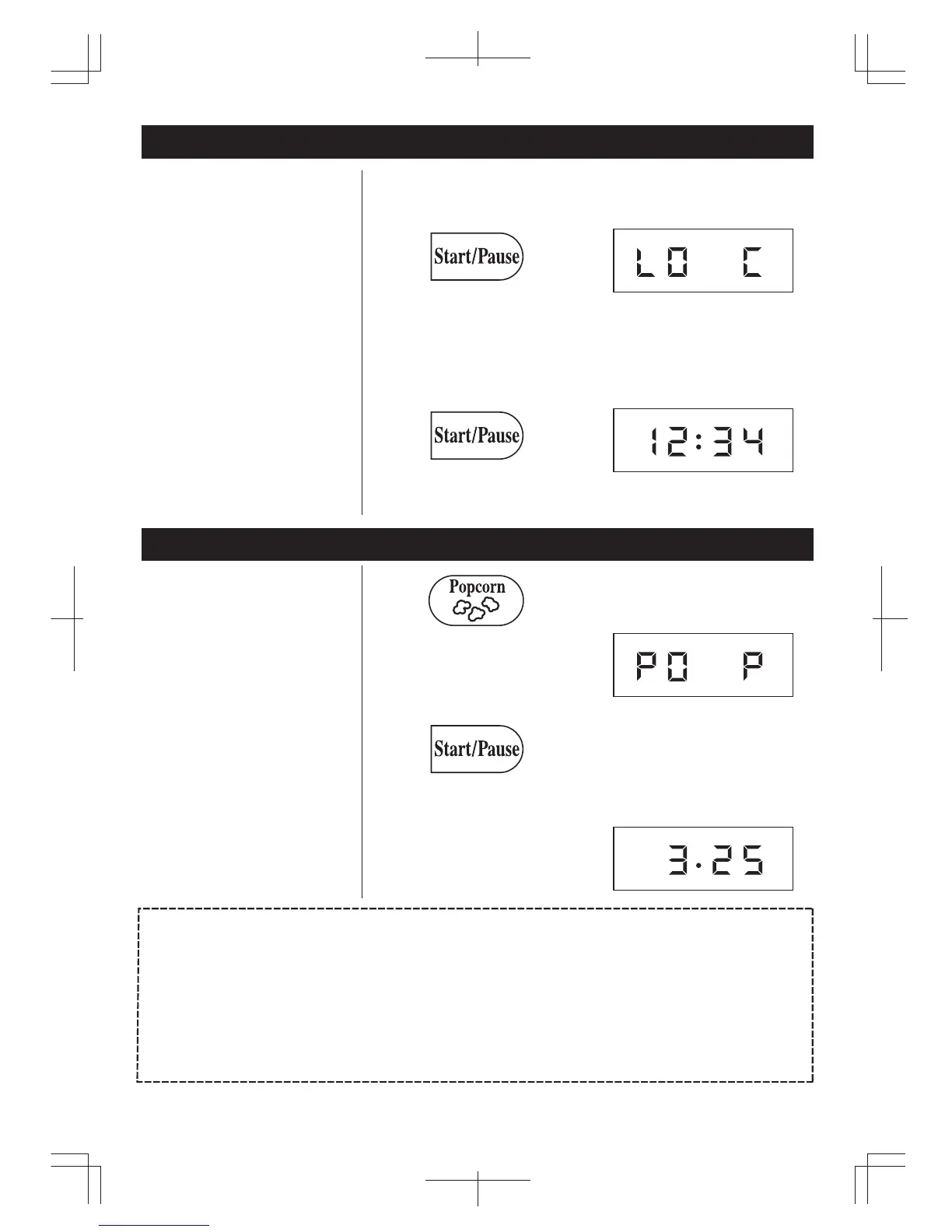 press the Popcorn pad again as the popcorn may burn. Check the popcorn bag for cooking instructions.