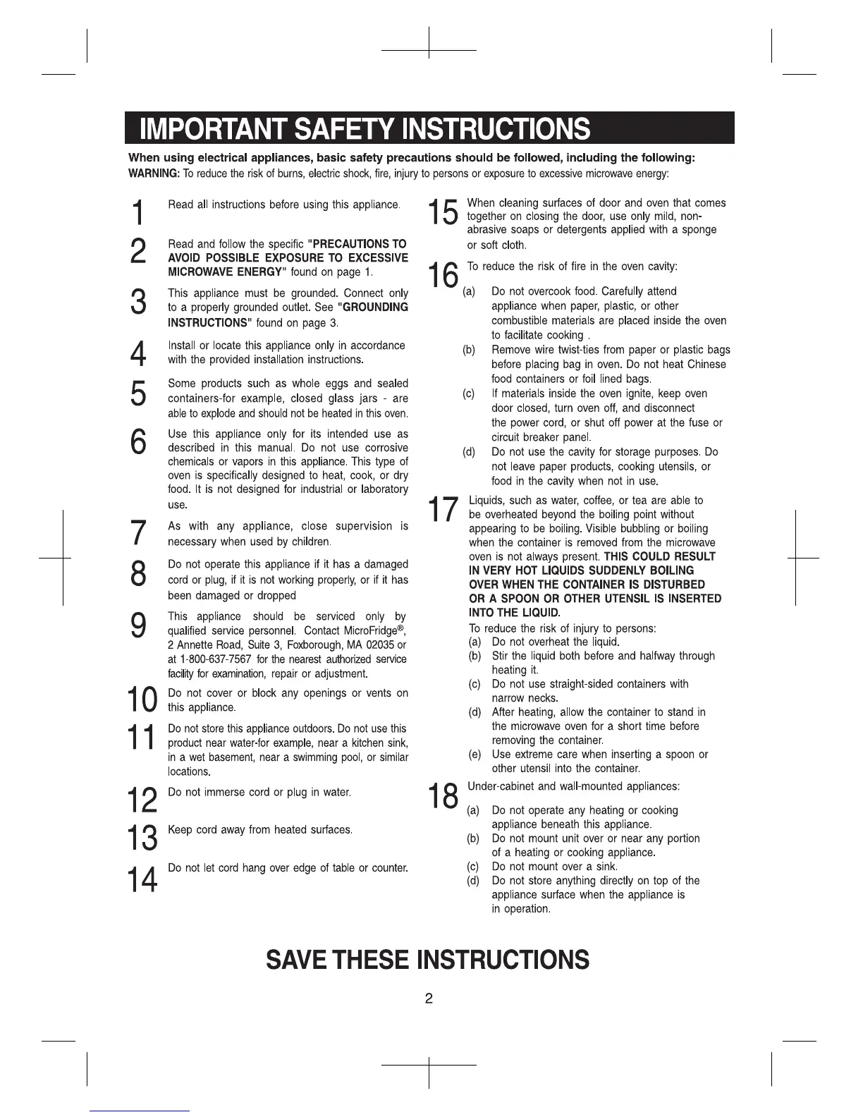 MicroFridge MFM-9TP - Key Safety Instructions; General Microwave Safety Rules; Fire Safety in Microwave Ovens; Liquid Heating Safety